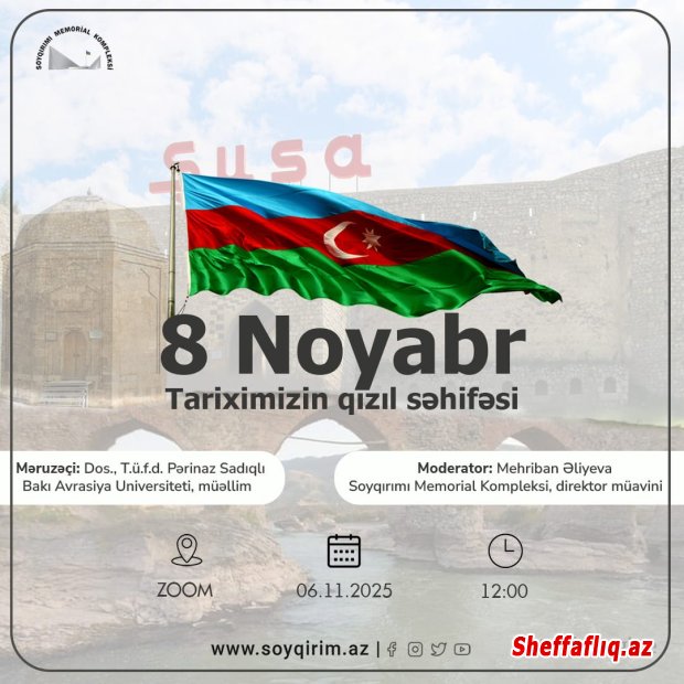 9 Noyabr - Dövlət Bayrağı Gününə həsr edilmiş vebinar keçirilib. Soyqırımı Memorial Kompleksinin təşkilatçılığı ilə “Konstitusiya və Suverenlik İli” çərçivəsində 9 Noyabr - Dövlət Bayrağı Gününə həsr olunmuş vebinar keçirilmişdir. Şəffaflıq.az xəbər verir ki, Kompleksin direktor müavini Mehriban Əliyevanın moderatorluğu ilə keçirilən vebinarda Mədəni İrsin Qorunması, İnkişafı və Bərpası üzrə Dövlət Xidmətinin tabeliyində olan müxtəlif qoruqlardan 30-dan çox əməkdaş iştirak edib. Tədbirdə çıxış edən Bakı Avrasiya Universitetinin Sosial və Siyasi Fənlər Kafedrasının dosenti, tarix üzrə fəlsəfə doktoru Pərinaz Sadıqlı, Ali Baş Komandan İlham Əliyevin liderliyi ilə Azərbaycanın qəhrəman ordusunun işğal altında olan torpaqlarını azad edərək, dünya tarixinə qızıl hərflərlə həkk olunan bir zəfər qazandığını bildirib. O, 9 Noyabr Dövlət Bayrağı Gününün, tarixi torpaqlarımızda böyük qürur və fərəh hissi ilə qeyd olunduğunu vurğulayıb. Daha sonra çıxış edən AMEA Z. Bünyadov adına Şərqşünaslıq İnstitutunun aparıcı elmi işçisi, tarix üzrə fəlsəfə doktoru, dosent Sübhan Talıblı müstəqilliyini bərpa etdikdən sonra Azərbaycanın dövlət bayrağının milli suverenliyin simvolu kimi, ölkəmizin bütün vətəndaşları üçün müqəddəs dövlətçilik rəmzlərindən birinə çevrildiyini bildirib.Sonda, mövzu ətrafında fikir mübadiləsi aparılıb.