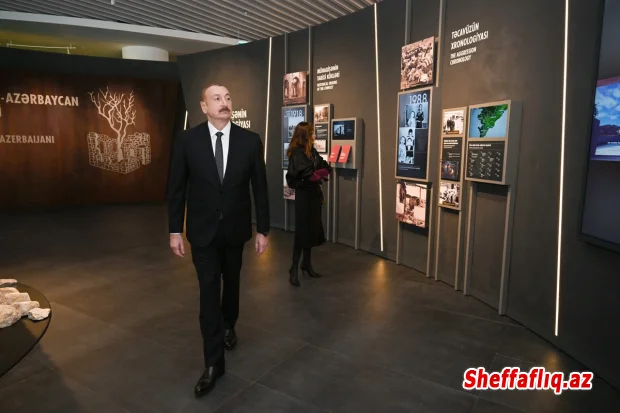 Azərbaycan Prezidenti İlham Əliyev və birinci xanım Mehriban Əliyeva Bakıda Zəfər abidəsini ziyarət edib və Zəfər muzeyinin açılışında iştirak ediblər. Şəffaflıq.az xəbər verir ki, Prezident İlham Əliyev Zəfər abidəsinin önünə əklil qoyub, şəhidlərin xatirəsini ehtiramla anıb. Birinci xanım Mehriban Əliyeva abidənin önünə gül dəstələri düzüb. Sonra dövlət başçısı və birinci xanım Zəfər muzeyinin açılışında iştirak ediblər. Zəfər muzeyi Azərbaycan Prezidenti İlham Əliyevin 2020-ci ilin dekabrında "Bakı şəhərində Vətən müharibəsi memorial kompleksinin və Zəfər muzeyinin yaradılması haqqında" Sərəncamından irəli gələrək Azərbaycan xalqının Vətən müharibəsində göstərdiyi misilsiz qəhrəmanlığın və qazandığı şanlı Zəfərin nümayiş etdirilməsi, şəhidlərimizin əziz xatirəsinin əbədiləşdirilməsi məqsədilə yaradılıb. Muzeyin ekspozisiyası beynəlxalq təcrübə və dünyada mövcud muzey konsepsiyaları əsas götürülməklə, həmçinin ən son texnologiyalar tətbiq edilməklə işlənilib. Burada 8 ekspozisiya zalı yaradılıb: "Qarabağ və Şərqi Zəngəzur. Əsrlərin hekayəsi", "Ermənistan–Azərbaycan münaqişəsi. Tarixə baxış", "44 günlük Vətən müharibəsi. "Dəmir yumruq" əməliyyatı", "Şanlı Zəfər. Şuşanın azad olunması", "Qəhrəmanlar yolu", "Qarabağ Azərbaycandır!", "Dövlət suverenliyinin bərpası. 20.09.2023", "Qarabağ və Şərqi Zəngəzur. Dirçəliş". Təqdim olunan faktlar, foto və videomateriallar, interaktiv nümayişlər və xüsusi olaraq bu muzey üçün hazırlanmış eksponatlar, maketlər münaqişə haqqında həqiqətləri, 44 günlük Vətən müharibəsinin gedişi, şanlı Zəfər nəticəsində dövlət suverenliyinin bərpa olunması barədə məlumatları ziyarətçiyə dolğun çatdırmaqla yanaşı, həm də bu hadisələri hər bir kəsə yenidən yaşadır. Muzeyin girişində tarixi Qələbənin rəmzinə çevrilmiş "Dəmir yumruq" instalyasiyası və Müzəffər Ali Baş Komandan, Prezident İlham Əliyevin çıxışından fikirlər əks olunur. Muzeyi əhatə edən divarda 44 günlük Vətən müharibəsində şəhid olmuş qəhrəmanlarımızın adı ehtiram əlaməti kimi həkk edilib. Divarboyu axan su daimi həyat mənbəyi kimi şəhidlərimizin qəhrəmanlıqları ilə ölümsüzlüyə qovuşduqlarını, hər zaman qəlbimizdə yaşadıqlarını simvolizə edir. Muzeyin ekspozisiya zallarında isə Qarabağda Vətən müharibəsinədək və Zəfər Günündən sonra həlak olmuş şəhidlərimizin adları var. Muzeyin "Qarabağ və Şərqi Zəngəzur. Əsrlərin hekayəsi" adlı birinci zalında Azərbaycanın mədəniyyət beşiyi olan Qarabağın təbii gözəlliyi, tarixi memarlıq baxımından zənginliyi təqdim edilir. Zalın divarındakı kitab instalyasiyalarında Ümummilli Lider Heydər Əliyevin bölgənin sosial-iqtisadi inkişafına verdiyi töhfələrə dair geniş məlumatlar var. Zalın mərkəzində yerləşən interaktiv kitablar isə Qarabağın təbiəti, ədəbi irsi, musiqisi və xalq sənəti ilə yaxından tanış olmağa imkan yaradır. Eyni zamanda, ziyarətçilərə Qarabağın dövlətçilik, hərb, ədəbiyyat və incəsənət sahələrində iz qoymuş görkəmli şəxsiyyətlərinə dair məlumatlar çatdırılır. Zəfər muzeyinin "Ermənistan–Azərbaycan münaqişəsi. Tarixə baxış" zalı Qarabağ münaqişəsinin ağrılı və unudulmaz səhifələrini əks etdirir. Burada münaqişənin xronologiyası, Ulu Öndərin və dövlətimizin başçısının apardıqları ardıcıl siyasət nəticəsində torpaqlarımızın işğaldan azad olunması, sülh prosesi barədə məlumatlar yer alıb. Zalda qaçqınlar və məcburi köçkünlər, münaqişə qurbanları, eləcə də işğal dövründə ermənilər tərəfindən dağıdılmış abidələr, məscidlər və milli irsə vurulan ziyan haqqında geniş məlumat təqdim olunur. Qarabağda işğal dövründə dağıdılmış binaların, yerlə-yeksan edilmiş yaşayış yerlərinin taleyinə həsr olunan instalyasiya – viran qalmış ev və bu evin qalıqları altından baş qaldıran ağac isə həyatın yenidən dirçəlişinin rəmzidir. "44 günlük Vətən müharibəsi. "Dəmir yumruq" əməliyyatı" adlı üçüncü zal Azərbaycan torpaqlarının azadlığı uğrunda aparılan qəhrəmanlıq mübarizəsini əks etdirir. Zalın mərkəzindəki LED monitorlar süni intellektlə hazırlanmış videomateriallarla ziyarətçini 44 günlük döyüşlərin mərkəzinə aparır. Monitorlarda döyüş əməliyyatları, hərbi nailiyyətlər və Ermənistan silahlı qüvvələrinin mülki əhaliyə qarşı hərbi hücumları ilə bağlı materiallar təqdim olunur. Holoqrafik ekranlar isə müasir hərbi texnikanı 3D formatda nümayiş etdirir. İnteraktiv xəritələr işğaldan azad edilmiş ərazilərdə həyata keçirilən hərbi əməliyyatların mərhələlərini ardıcıllıqla göstərir. Bu zalda tarixi Qələbənin qazanılmasında müstəsna xidmətləri olan Azərbaycan Respublikasının Silahlı Qüvvələrinin qoşun növlərinin bayraqları, eyni zamanda, Silahlı Qüvvələrin xüsusi təyinatlılarının maketləri var. Həmçinin burada Azərbaycan Prezidentinin Vətən müharibəsi və Zəfərlə bağlı bir sıra fərman və Sərəncamları nümayiş olunur. "Şanlı Zəfər. Şuşanın azad olunması" adlı dördüncü zalda Azərbaycanın hərb tarixində xüsusi yer tutan, misilsiz taktiki bacarıqla həyata keçirilmiş əməliyyatı təqdim olunur. Vətən müharibəsi zamanı xüsusi təyinatlı döyüşçülər ağır artilleriyasız Şuşanı azad edərək böyük qəhrəmanlıq göstəriblər. Zalın mərkəzindəki Şuşa maketi döyüş meydanını əks etdirir, interaktiv monitorlar isə əməliyyatın gedişini və əsas taktiki məqamları ardıcıl izləməyə