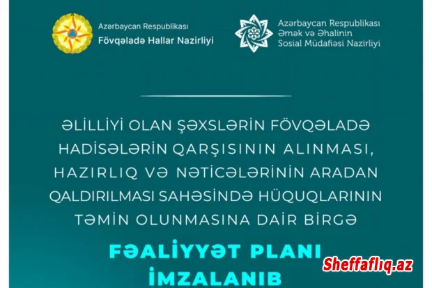 Əlilliyi olan şəxslər üçün erkən xəbərdarlıq, SMS xidməti və məlumatlandırma üzrə tətbiqlər yaradılacaq. Şəffaflıq.az xəbər verir ki, bu, Fövqəladə Hallar (FHN) və Əmək və Əhalinin Sosial Müdafiəsi Nazirlikləri arasında əlilliyi olan şəxslərin fövqəladə hadisələrin qarşısının alınması, hazırlıq və nəticələrinin aradan qaldırılması sahəsində hüquqlarının təmin olunmasına dair imzalanmış 2025-2030-cu illər üzrə Birgə Fəaliyyət Planında əksini tapıb. Fəaliyyət Planına əsasən, əlilliyi olan və onlara qulluq edən şəxslər üçün fövqəladə hallarla bağlı davranış qaydalarına dair maarifləndirmə tədbirləri həyata keçiriləcək. Qeyd edilib ki, FHN-in xilasedici və yanğınsöndürənlərinin əlilliyi olan şəxslərə yardım göstərilməsi üzrə bilik və bacarıqlarının daha da təkmilləşdirilməsi ilə bağlı təlimlər təşkil olunacaq və əlilliyi olan şəxslərin "112" qaynar telefon xəttinə müraciətlərinin qəbul edilməsi üzrə müasir texnologiya və üsulların tətbiqi imkanları araşdırılacaq. Sənəddə fövqəladə hadisə baş verdikdə əlilliyi olan şəxslərin reabilitasiya və sosial xidmət müəssisələri barədə məlumat mübadiləsinin aparılması, onların təxliyəsi, qeydiyyatı, müvəqqəti yerləşdirilməsi və digər tədbirlər də nəzərdə tutulub.
