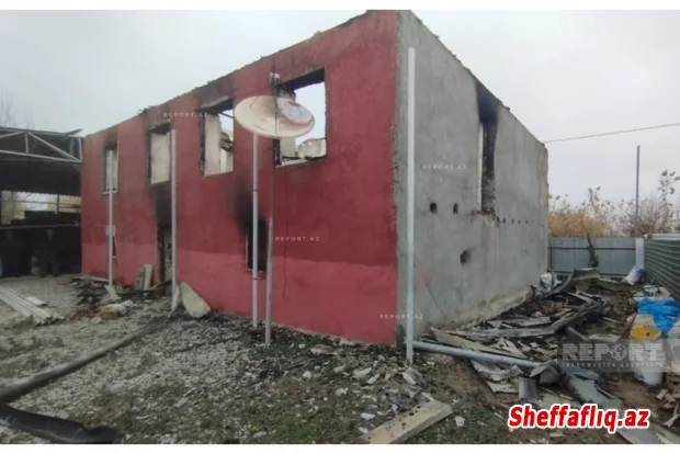 Kürdəmirdə səkkizotaqlı ev tamamilə yanıb