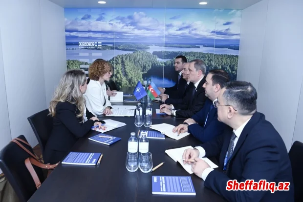 Azərbaycan Respublikasının xarici işlər naziri Ceyhun Bayramov Avropada Təhlükəsizlik və Əməkdaşlıq Təşkilatının (ATƏT) Nazirlər Şurasının Vyana şəhərində keçirilən 32-ci iclası çərçivəsində NATO baş katibinin müavini Radmila Şekerinska ilə görüşüb. Şəffaflıq.az xəbər verir ki, bu barədə Azərbaycanın Xarici İşlər Nazirliyi (XİN) məlumat yayıb. Görüş zamanı Azərbaycan və NATO arasında əməkdaşlıq gündəliyinin təhlükəsizlik, müdafiə, enerji təhlükəsizliyi və digər aspektləri müzakirə olunub. NATO üzv ölkələrinin səfirlərinin ölkəmizə cari ilin noyabr ayında ölkəmizə səfəri və yüksək səviyyəli görüşlər məmnunluqla xatırlanıb. C.Bayramov, Vaşinqton sammiti çərçivəsində əldə olunmuş razılıqlar və sülh perspektivləri, bölgədə nəqliyyat dəhlizləri üzrə planlar barədə məlumat verib. Görüş zamanı həmçinin, qarşılıqlı maraq doğuran digər ikitərəfli və regional məsələlər, NATO mexanizmləri çərçivəsində əməkdaşlıq ətrafında fikir mübadiləsi aparılıb.