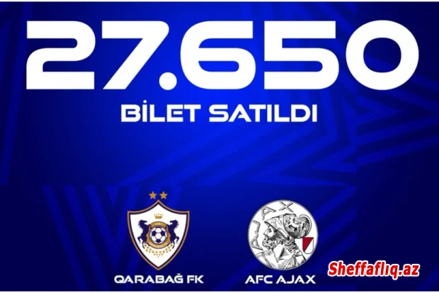 Bakıda "Qarabağ" və Niderlandın "Ayaks" komandaları arasında keçiriləcək UEFA Çempionlar Liqasının əsas mərhələsinin VI turunun oyununa indiyədək 27 650 bilet satılıb. Bu barədə Ağdam klubundan məlumat verilib. Qeyd edək ki, "Qarabağ" - "Ayaks" matçı dekabrın 10-da, saat 21:45-də Tofiq Bəhramov adına Respublika stadionunda start götürəcək. Şəffaflıq.az