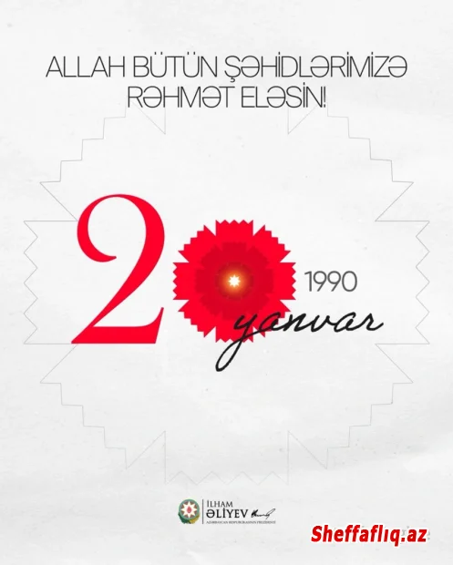 Azərbaycan Prezidenti İlham Əliyev sosial media hesablarında 20 Yanvar faciəsinin 36-cı ildönümü ilə bağlı paylaşım edib. Şəffaflıq.az xəbər verir ki, paylaşımda yazılıb: "Allah bütün şəhidlərimizə rəhmət eləsin!"