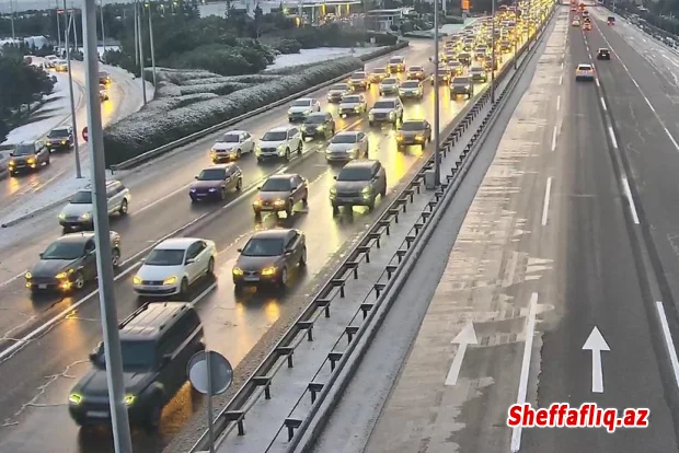 Aeroport şosesi - mərkəz istiqamətində yol buz bağlayıb, nəqliyyatın hərəkəti çətinləşib